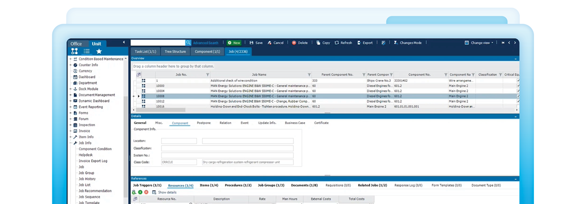 El Sistema de Mantenimiento de Buques proporciona a nuestros clientes un software de GMAO marítimo innovador, fiable y sencillo. Para que no vuelvas a tener tiempos de inactividad innecesarios.